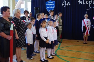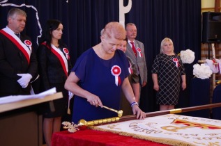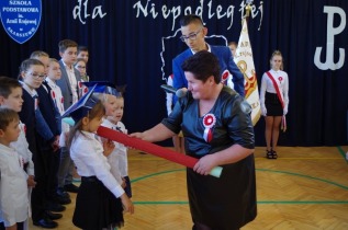 Uroczystym momentem było wprowadzenie wcześniej poświęconego w czasie Mszy Świętej sztandaru. Nastąpiła ceremonia symbolicznego aktu wbijania gwoździ honorowych przez sponsorów. Poczet sztandarowy rodziców przekazał sztandar Dyrektorowi Szkoły, który złożył uroczystą przysięgę. Następnie Dyrektor przekazał sztandar uczniom. Przedstawiciele klas, nauczycieli, rodziców, pierwszaki ślubowali nosić ten sztandar z godnością i honorem.