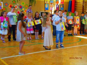 16 czerwca 2016 roku odbyła się w naszej szkole uroczystość z okazji Dnia Mamy i Dnia Taty. Jako pierwsze zaprezentowały się dzieci z oddziału przedszkolnego. W przedstawieniu pt. „Chodzą Mamy” oraz „Tatusiowie” ukazały jak wielkie i pełne miłości jest serce mamy oraz zmagania tatusiów podczas prac domowych. Następnie na scenie wystąpili uczniowie z klasy I, którzy pokazali jakie są marzenia mamy i taty. Kolejną grupą były dzieci z klasy II, które poprzez grę na instrumentach, śpiew piosenek i recytację wierszy ukazały swą miłość do Mamy i Taty. Natomiast uczniowie z klasy III pokazali w swoim przedstawieniu, że pomimo problemów dnia codziennego w rodzinie zawsze znajdziemy wsparcie.