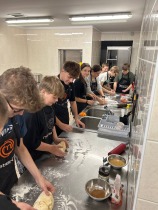 Jednym z ciekawszych punktów programu był mini kurs gotowania, podczas którego uczniowie mieli okazję spróbować swoich sił w kuchni. Przygotowali pyszne drożdżówki i ciastka na podwieczorek dla wszystkich uczestników.