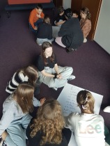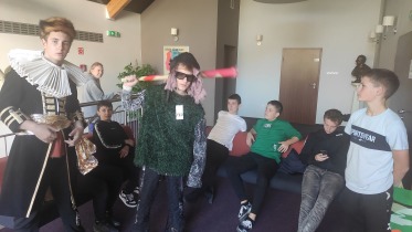 Dnia 11 października 2022 roku uczniowie klasy 7 i 8 uczestniczyli w czterogodzinnych warsztatach teatralnych: „Konwencje i sposoby opowiadania w teatrze”. Przyjrzeli się z bliska ludziom teatru oraz poznali tajniki ich pracy. Wcielali się w rolę reżysera, aktora, scenografa, operatora świateł, realizatora dźwięku czy kostiumografa i próbowali opracować fragment szekspirowskiego dzieła pod tytułem „Makbet”. Ponadto przypomnieli sobie gatunki teatralne. Podczas zajęć wykorzystywane były narzędzia storytellingowe, mapy myśli, zadania z kreatywnego pisania, żeby porozmawiać o tym, czym są i do czego służą konwencje. Dużą radość sprawiło uczniom dobieranie kostiumów do wcześniej wybranych i scharakteryzowanych postaci. Atrakcyjne było także ich przymierzanie i prezentowanie przed grupą oraz granie na różnego rodzaju instrumentach muzycznych i nagrywanie ścieżki dźwiękowej, będącej odzwierciedleniem wyświetlanego fragmentu filmu. Uczniowie uczyli się uważnego słuchania oraz wchodzenia w słowne interakcje uzależnione od danych sytuacji. Zajęcia były naprawę ciekawe, inspirujące, wyzwalające twórcze myślenie oraz kreatywność.