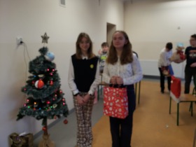 Na stołach zamiast zeszytów i książek pojawiły się potrawy przygotowane przez uczniów i rodziców m.in. pierogi z kapustą i grzybami, kapusta z grochem, ryba po grecku, makiełki, ciasto brownie, piernik, sałatka warzywna i owoce. Pod choinką pojawiły się prezenty. Śpiewaliśmy kolędy, łamaliśmy się opłatkiem. Był dziś również czas na swobodne rozmowy, na integrację, na gry i na budowanie relacji. Wigilia to oczekiwanie na Boże Narodzenie to czas nadziei i radości. Chcielibyśmy aby ta nadzieja i ta radość w sercu towarzyszyły nam przez cały okres Świąt i także w każdym kolejnym dniu. Życzymy Państwu i sobie wytrwałości w pielęgnowaniu nadziei i radości, która dziś gości naszych sercach.