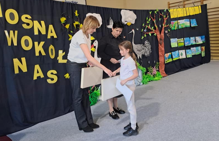 Naszą szkołę reprezentowały uczennice: Marcelina Ratajczyk, Maja Sowińska i Aleksandra Tritt. Oceny prac dokona komisja powołana przez organizatorów w składzie: Ewa Kowalczyk - Wiśniewska, Małgorzata Kraszkiewicz oraz Katarzyna Gwóźdź. Jury miało trudne zadanie, ponieważ wszystkie prace były oryginalne, pomysłowe i zgodne z tematem. Nasze uczennice doskonale poradziły sobie z zadaniem konkursowym, wykazując się ogromnym talentem i kreatywnością. Wszystkie prace były piękne i kolorowe. Wśród wyróżnionych uczniów znalazła się Maja Sowińska.