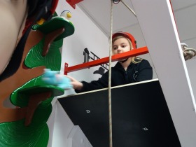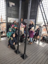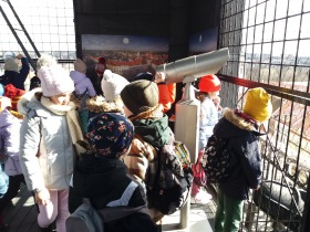 W pierwszej kolejności dzieci odwiedziły Ratusz. Na miejscu serdecznym uśmiechem i życzliwością przywitali nas pracownicy. W piwnicach, na korytarzach oraz kondygnacjach wieży mieliśmy okazję oglądać ekspozycję multimedialną poświęconą dziedzictwu historyczno – kulturowemu Kalisza i regionu. Uczestnicy dzielnie wspinali się po krętych schodach, by na tarasie widokowym podziwiać panoramę współczesnego Kalisza. Opowieści Pani Przewodnik były bardzo ciekawe, a widoki nieziemskie. Na zakończenie dzieci podziękowały pracownikom kaliskiego Ratusza oraz wręczyły własnoręcznie wykonany plakat.