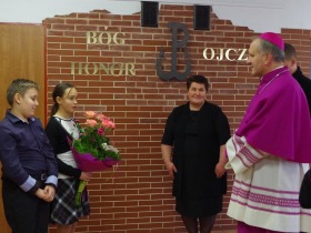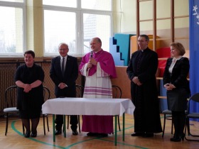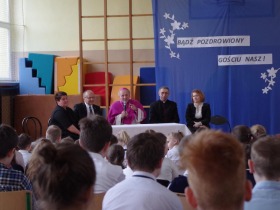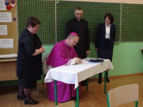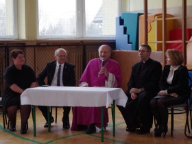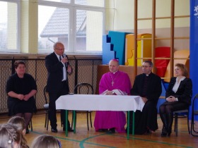 7 marca 2018 roku naszą szkołę odwiedził JE Ks. Biskup Łukasz Buzun. Po powitaniu przez Panią Dyrektor, przedstawicieli Urzędu Gminy, Rady Rodziców i Samorządu Uczniowskiego, wszyscy uczniowie przywitali Księdza Biskupa radosną piosenką. Dzieci bardzo uroczyście i poważne w tym dniu przygotowały pytania na które Ksiądz Biskup chętnie odpowiadał. Dzięki temu dowiedzieliśmy się, co lubił gdy był małym chłopcem i jak wygląda jego codzienność. Uczniowie pod opieką Pani Katechetki przygotowali także wiersze.