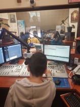 Następnie udaliśmy się do Radia Rodzina, katolickiej stacji radiowej diecezji kaliskiej nadającej swój program na częstotliwości 103,1 FM. Mieliśmy okazję poczuć się jak prawdziwi spikerzy radiowi. Ukazano nam tajniki radia oraz pokazano, jak korzystać z zamieszczonego tam sprzętu. Później ksiądz Damian oprowadził nas po seminarium duchownym, gdzie między innymi mogliśmy zobaczyć pokoje papieskie, w których przez trzy godziny przebywał i odpoczywał Jan Paweł II podczas swojej pielgrzymki w 1997 roku.