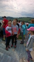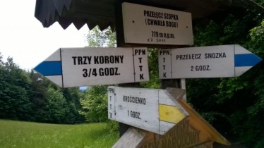 Następny dzień zapowiadał się na trudny i wyczerpujący ponieważ czekała nas wspinaczka na najwyższy szczyt Pienin Środkowych należący do Masywu Trzech Koron, liczący 982 m.n.p.m. – Okrąglicę. Tam znajduje się platforma widokowa z barierkami. Wędrówkę rozpoczęliśmy około godzin 10.00 i pięliśmy się dzielnie zwartą grupą w górę. Robiliśmy częste postoje ponieważ niektórzy z nas dość szybko zmęczyli się marszem a szlak okazał się dość ślizgi po wcześniejszym deszczu. Trzeba było bardzo uważać i ostrożnie stawiać stopy. Po trzech godzinach marszu zatrzymaliśmy się na dłuższy odpoczynek i zjedliśmy kanapki. Tu okazało się, że niektórzy z uczestników wycieczki postanowili zostać z panią Izą Śmieszniak i nie podchodzić wyżej. Jednak większość z nas zapakowała plecaki i ruszyła do ostatecznego zdobycia szczytu. Wysiłek opłacił się, ponieważ widoki z Trzech Koron na okolicę zapierały dech w piersiach.